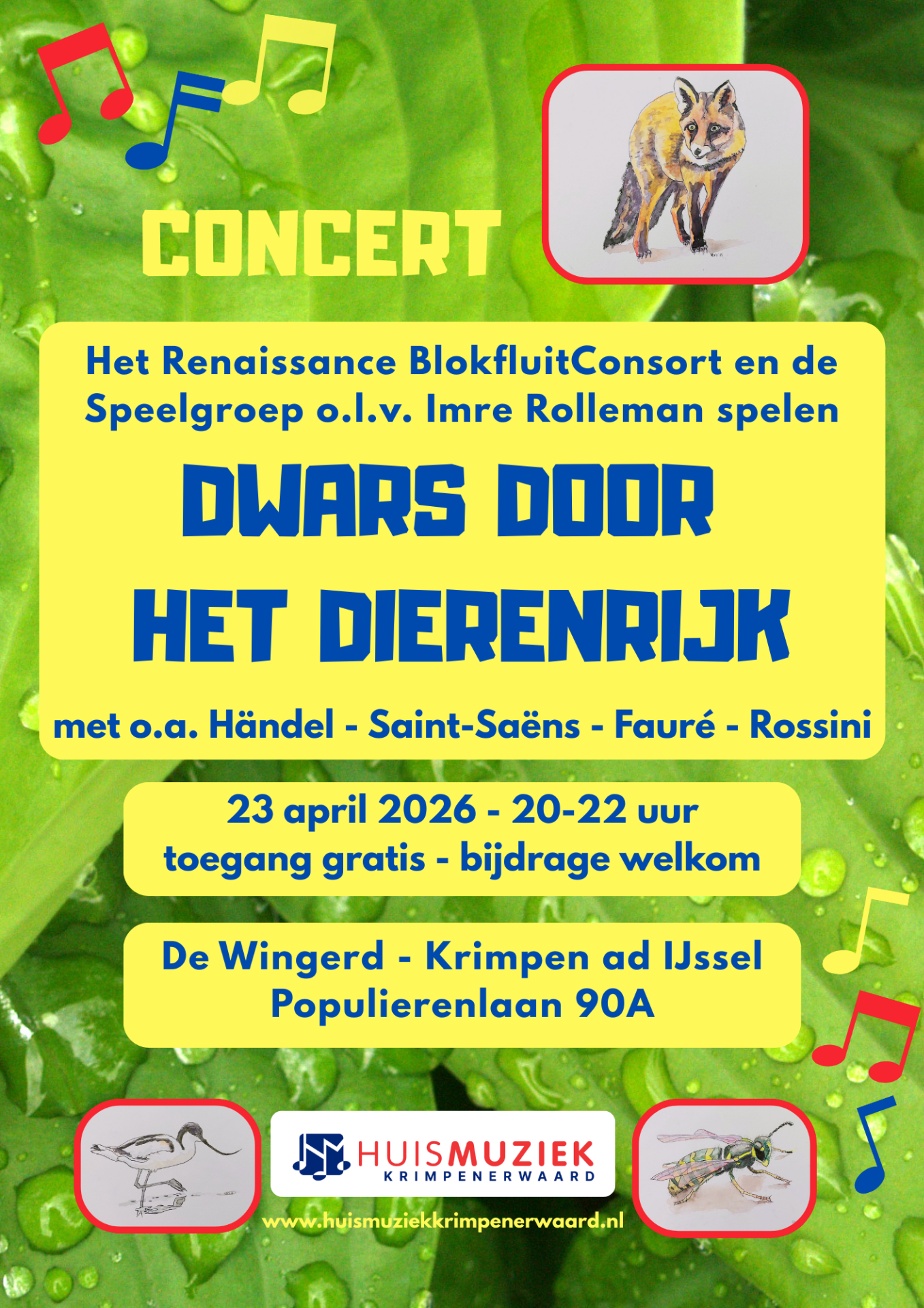 Op 5 januari zijn de repetities gestart van ons nieuwe voorjaarsproject dat helemaal in het teken staat van dieren: voor veel componisten een rijke bron van inspiratie. Dankzij veel nieuwe deelnemers werken we met een grote groep musici en een druk arrangerende dirigent toe naar ons concert op 23 april in De Wingerd in Krimpen aan den IJssel. Noteer de datum alvast in uw agenda. U bent van harte welkom!